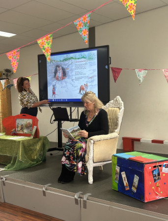 Startpagina > Fotogalerij: Presentatie 'muis joep zoekt een huis' > Voorlezen.(2)JPG.JPG